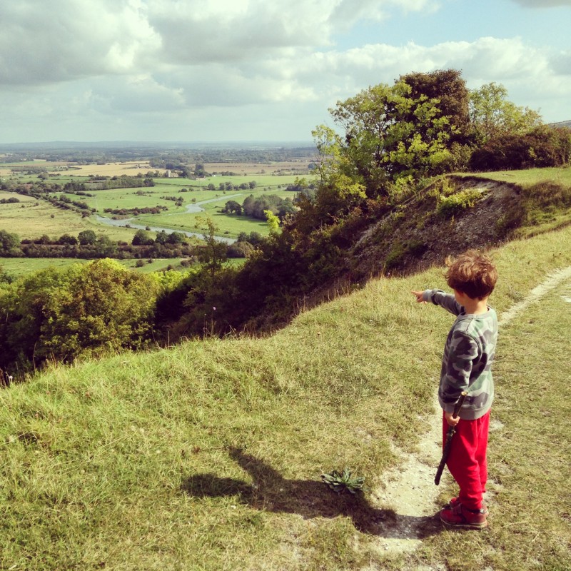 At the very end, the main path forked and we took the left, which lead us to the pit at the top of the chalk cliffs you can see from the Pells. This is what my son’s bedroom window looks out over and he was thrilled to be standing right on top of them when we hadn’t known we would come out here. The view from here sweeps across the Ouse Valley and you can spot the Church of St Peter in Hamsey not far away.
