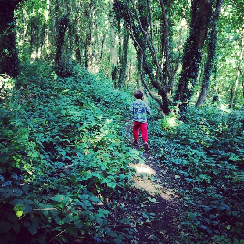 3) Or it can be a woodland walk. You can also head off to the right from the entrance gate, where there’s another smaller gate into the little woods. Walk along the path at the top of this fenced-off area, or go off-track into the tangle of trees. It is fairly easy to get through and quite open at some points, but it is on a gentle slope so watch your step.