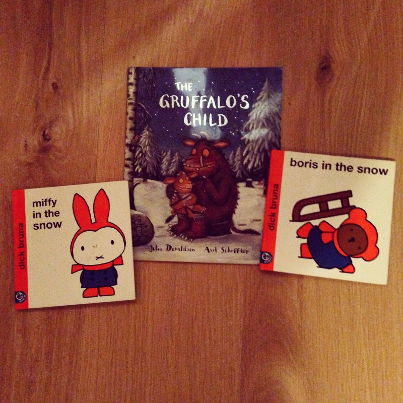 Following this, I thought I’d see just how many Christmas books we had lying around. Rather a few it turns out. Even so, to save money I extended the brief to include books about winter and snow – digging up ‘The Snowy Day’, ‘Mr. Snow’, ‘Spot’s Snowy Day’, ‘Miffy in the Snow’, ‘Boris in the Snow’ (Miffy’s bear counterpart) and ‘Bramley Hedge Winter Story’ (I bought all four seasons for my first son when I was pregnant with him, and we’ve never read them!).